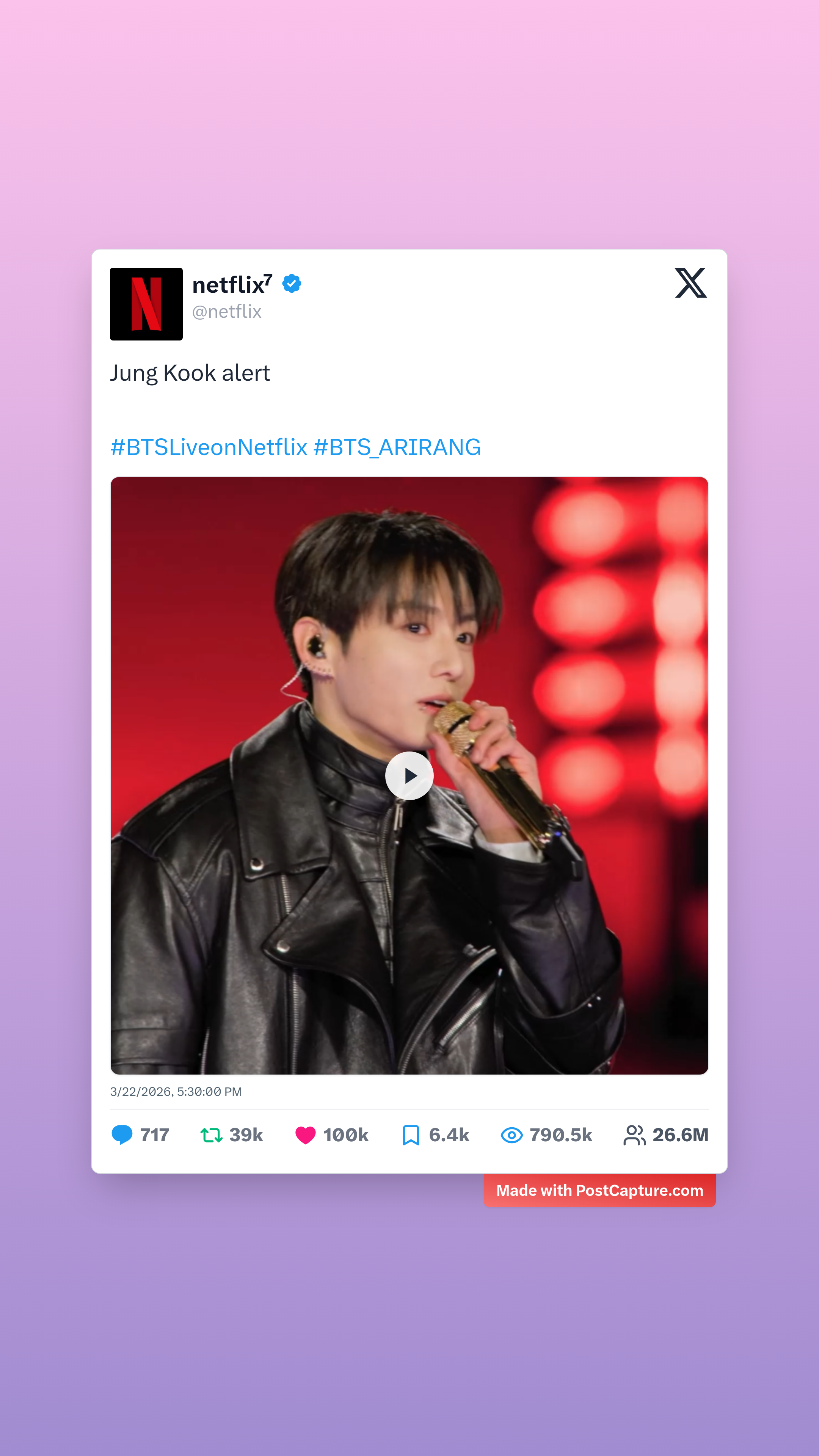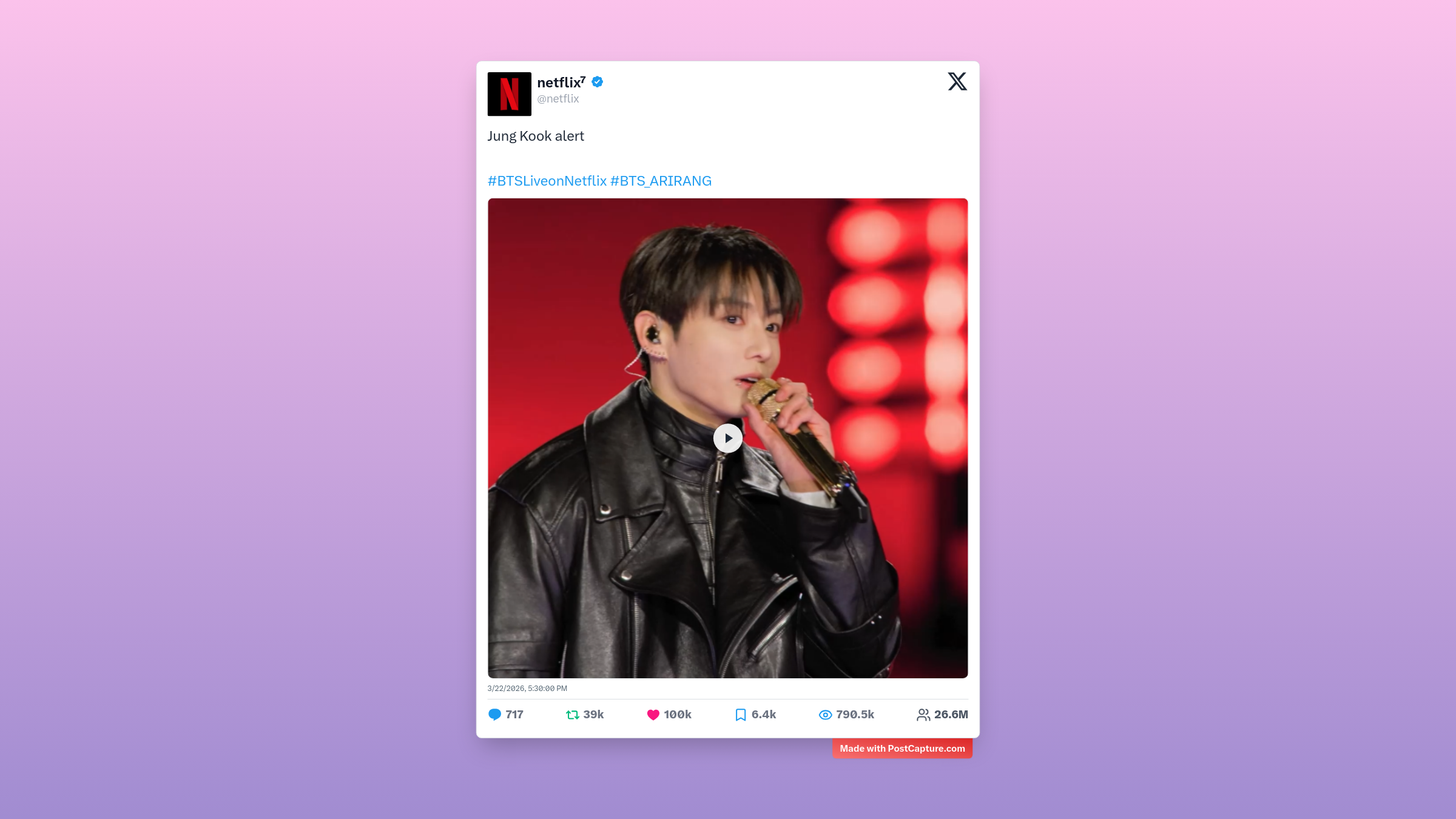 - **#1 - Netflix: "Jung Kook alert"** (100.1K Likes, 790.5K Aufrufe)