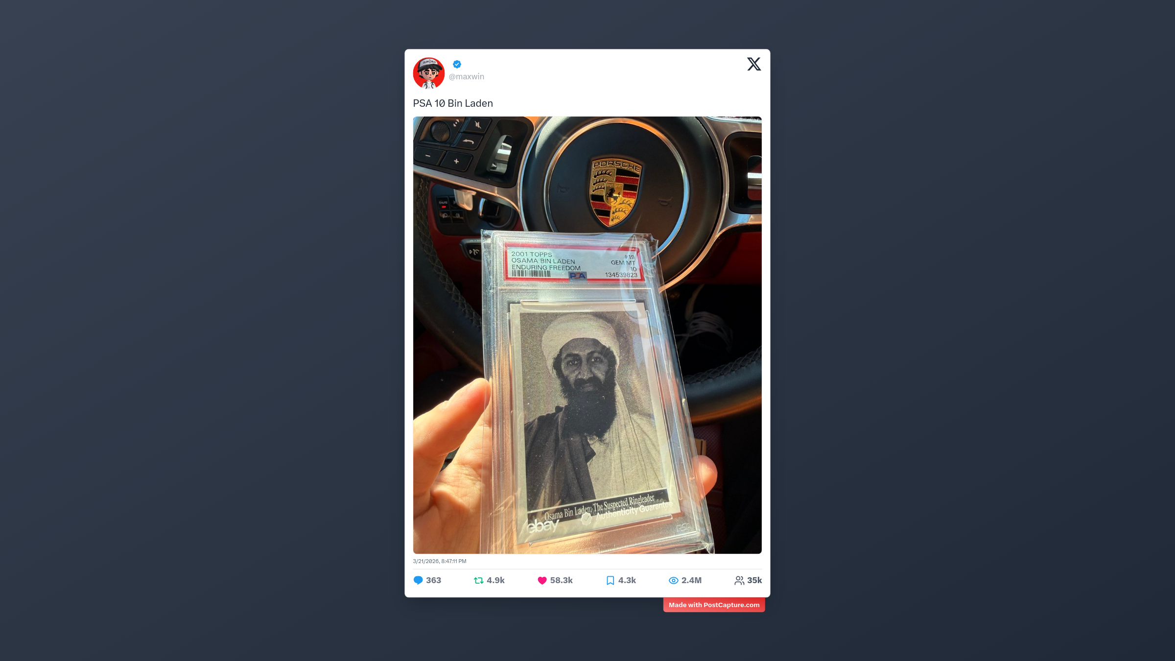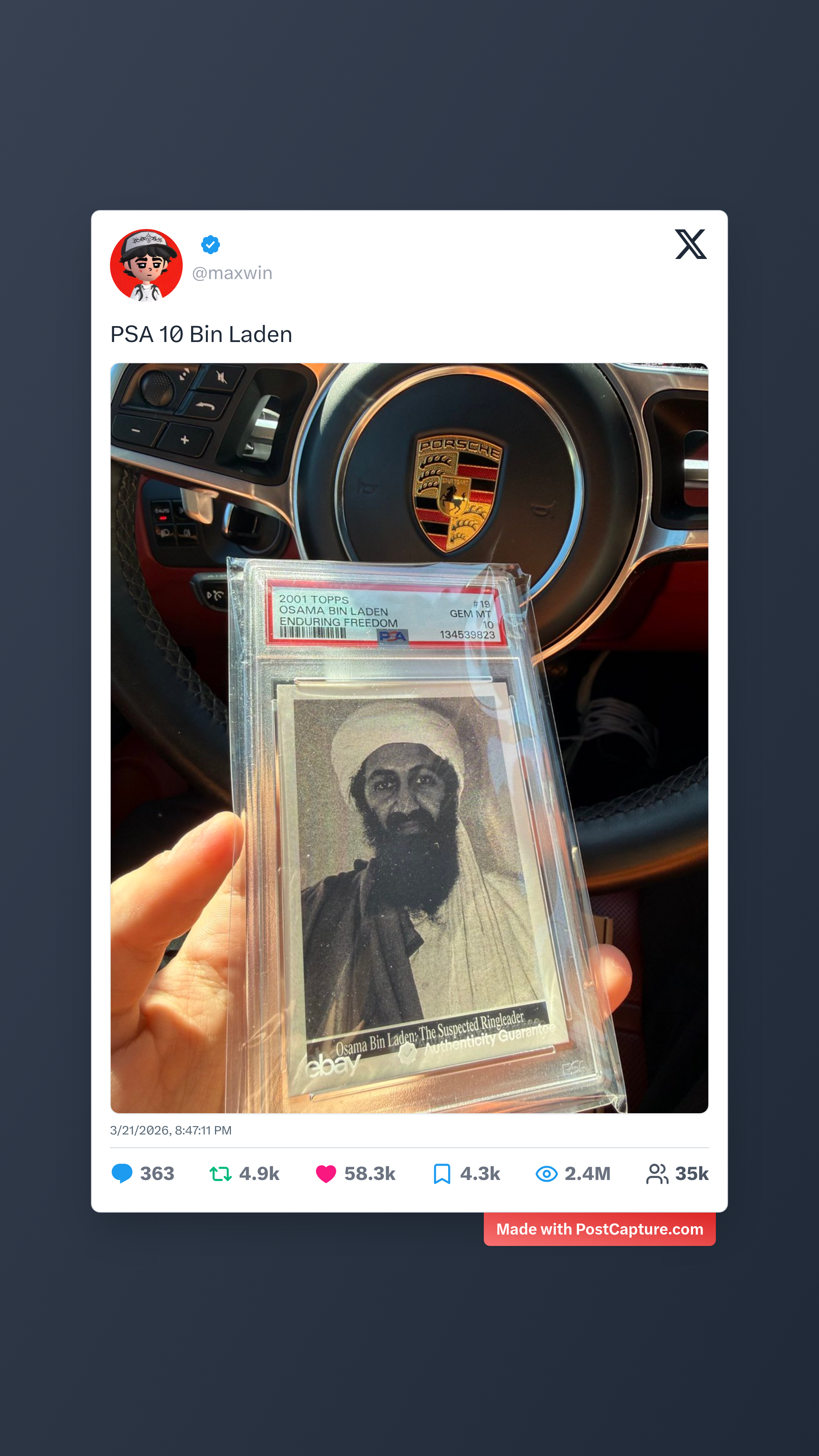 - **#2 - maxwin: "PSA 10 Bin Laden"** (58.3K Likes, 2.4M Aufrufe)