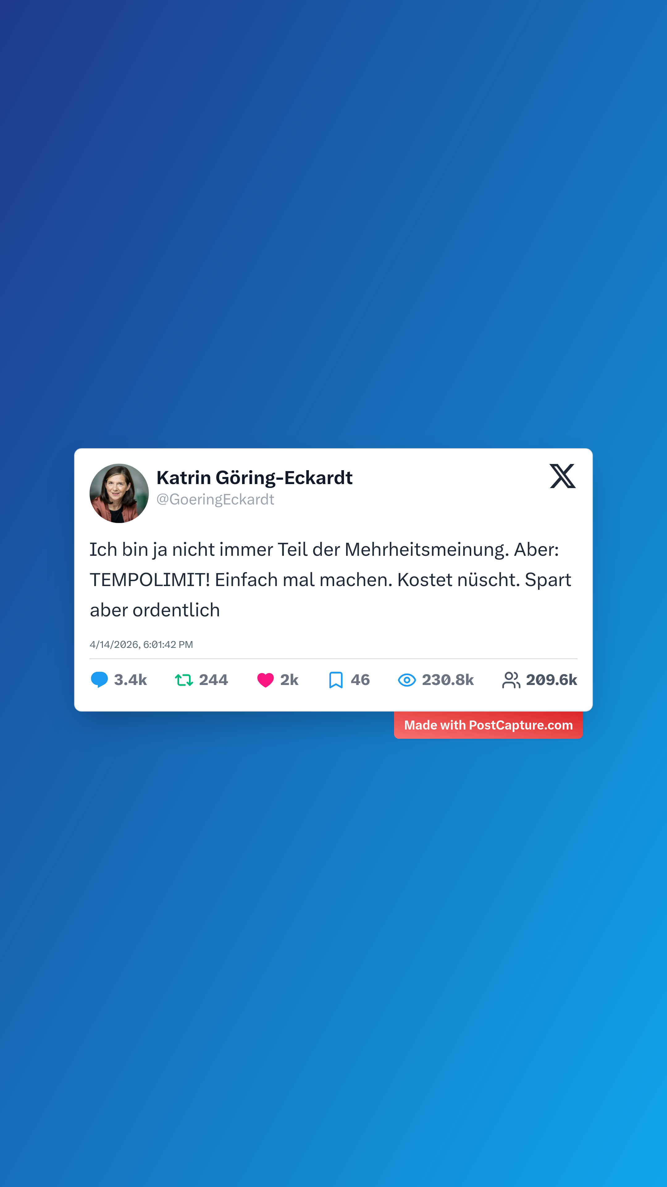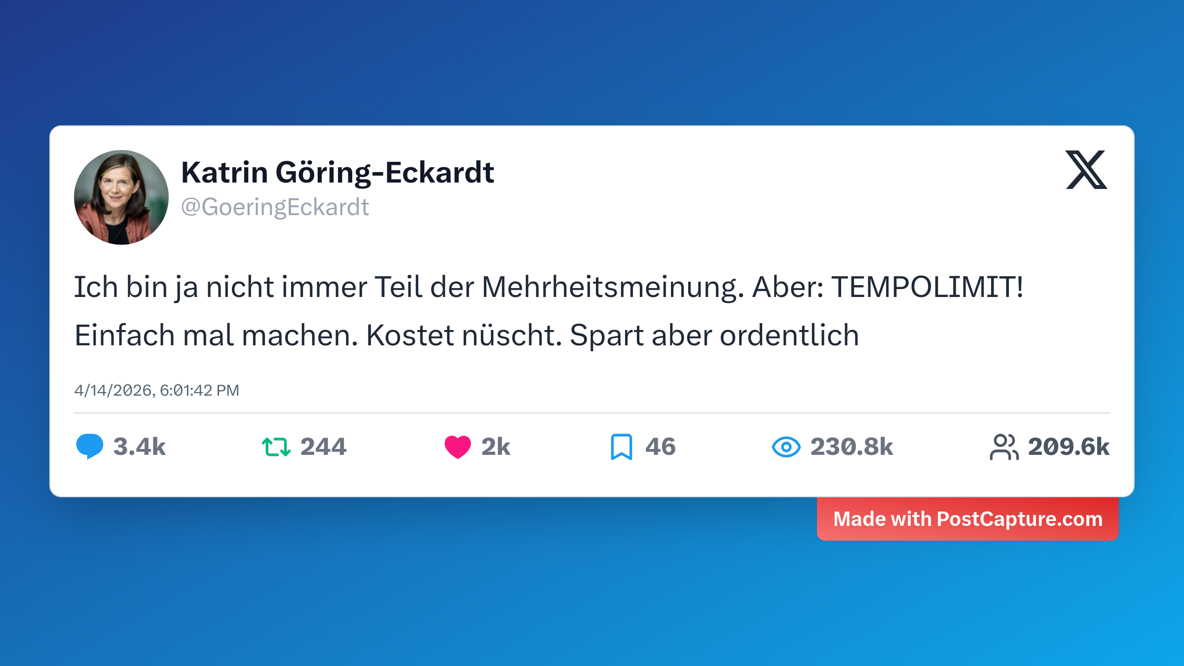 "DerMedienfuzzi" sorgte mit einer satirischen Umfrage für ordentlich Gesprächsstoff und über 4 000 Antworten, während Katrin Göring-Eckardt eine lebhafte Debatte über die Einführung eines Tempolimits auslöste. Das Thema polarisiert nach wie vor und zeigt, wie schnell einfache Vorschläge in hitzige Diskussionen umschlagen können.