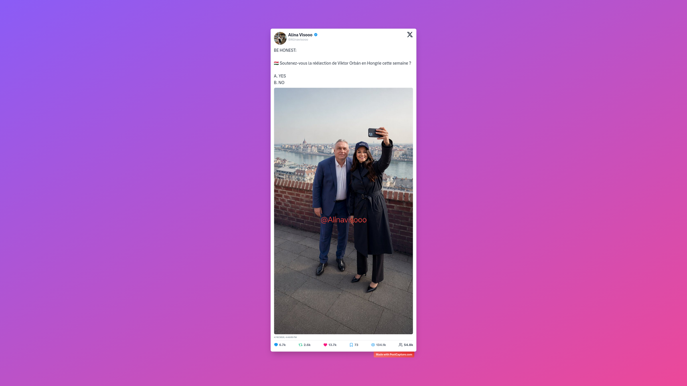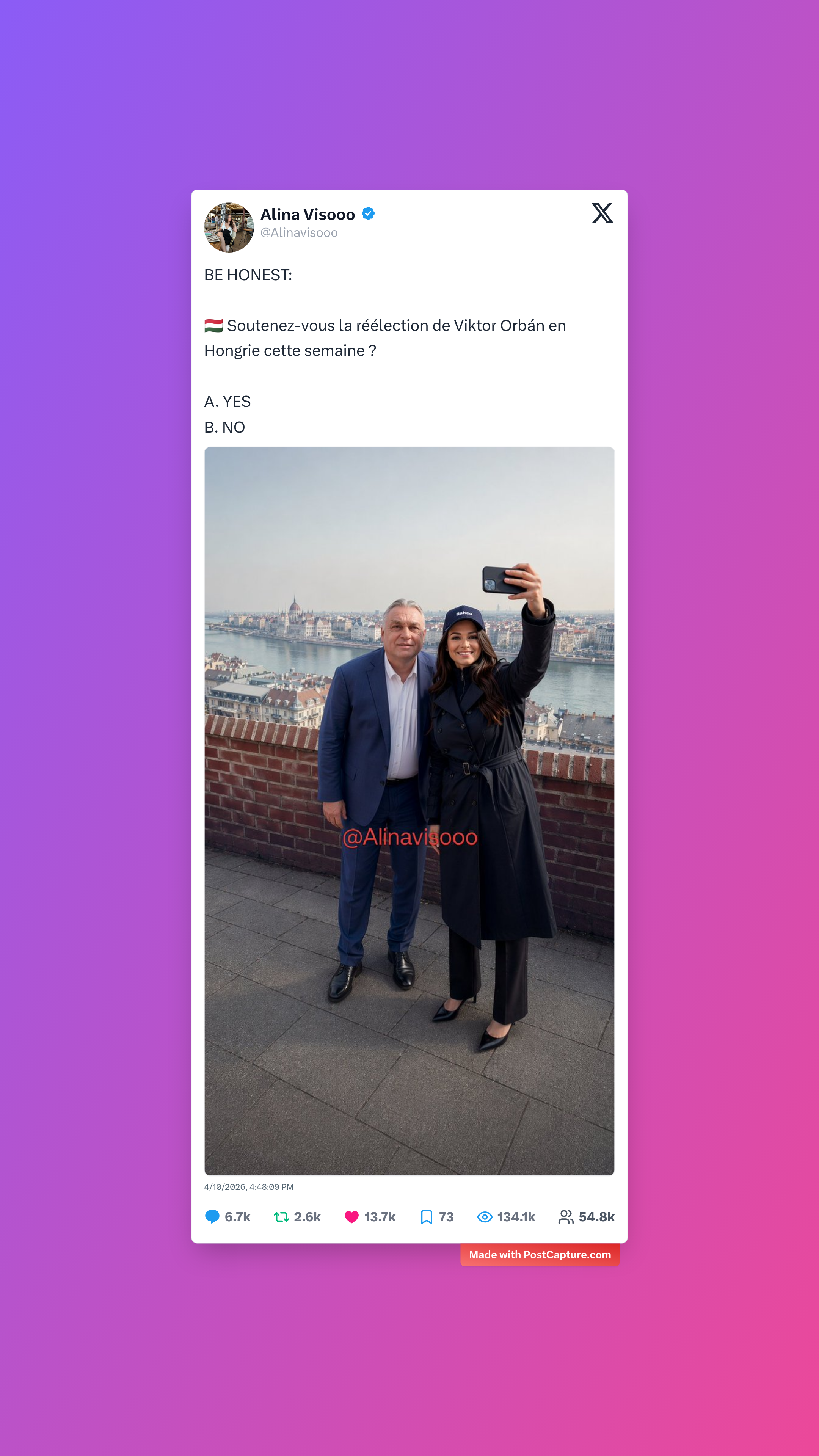 BE HONEST: 🇭🇺 Soutenez-vous la réélection de Viktor Orbán en Hongrie cette semaine ? A. YES B. NO