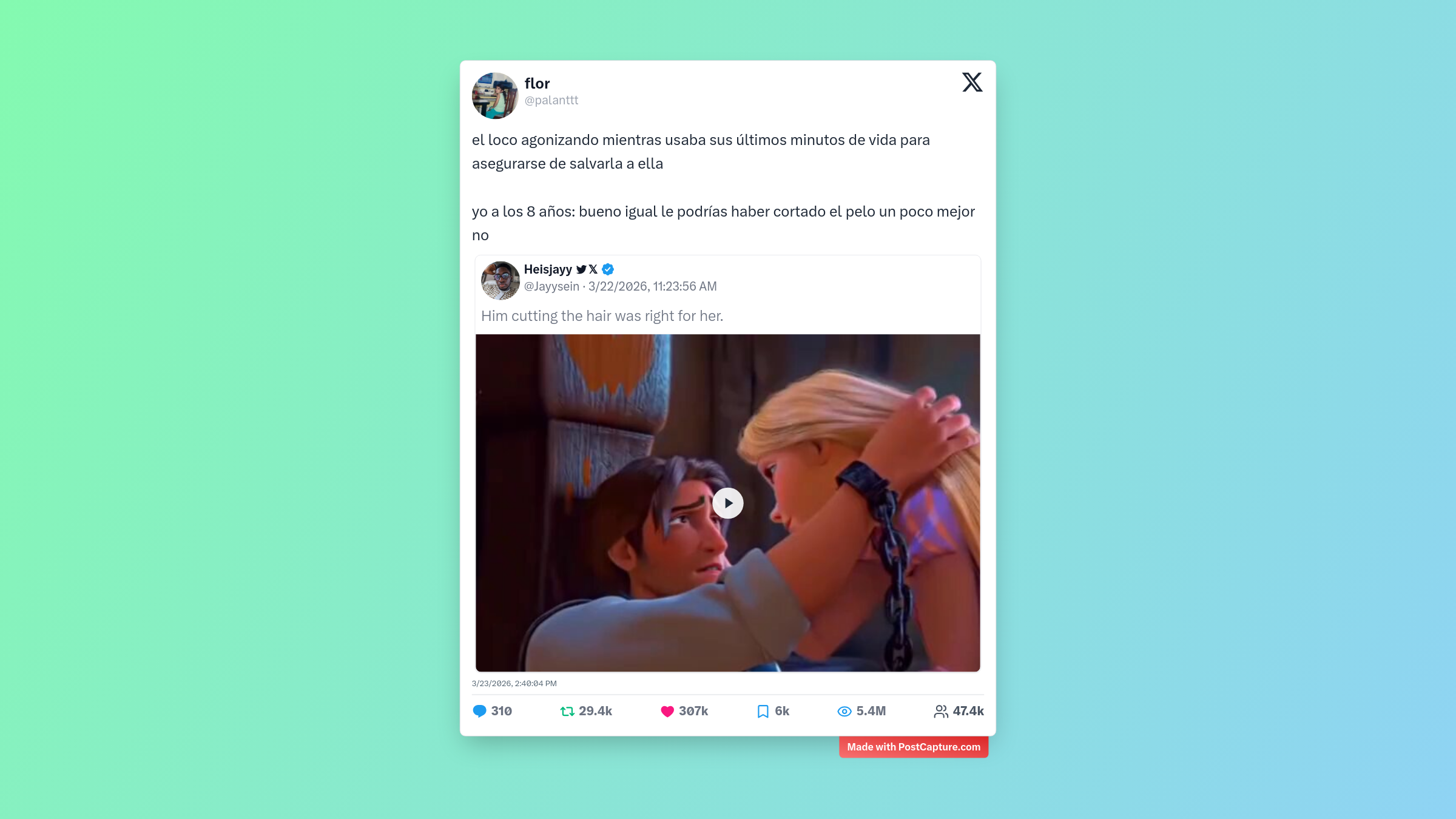 - * **Flor (@palanttt)**: La nostalgia cinematográfica se volvió viral (307K likes). Flor compartió una reflexión sobre ese momento donde un personaje se sacrifica por amor, contrastándolo con el comentario más absurdo que ella misma habría hecho a los 8 años. La honestidad brutal de nuestra "yo" pequeña conectó con cientos de miles de personas.