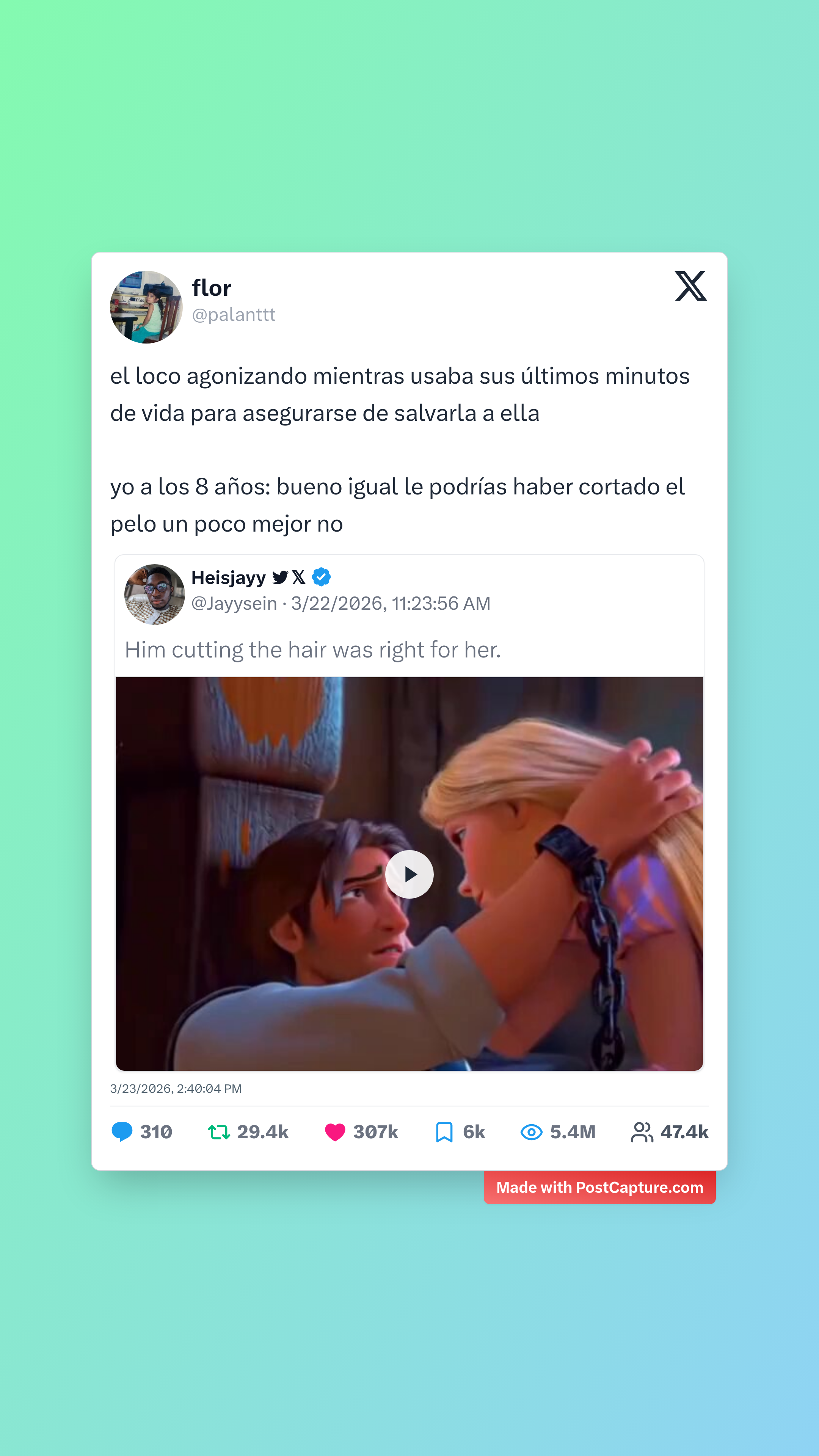 el loco agonizando mientras usaba sus últimos minutos de vida para asegurarse de salvarla a ella yo a los 8 años: bueno igual le podrías haber cortado el pelo un poco mejor no
