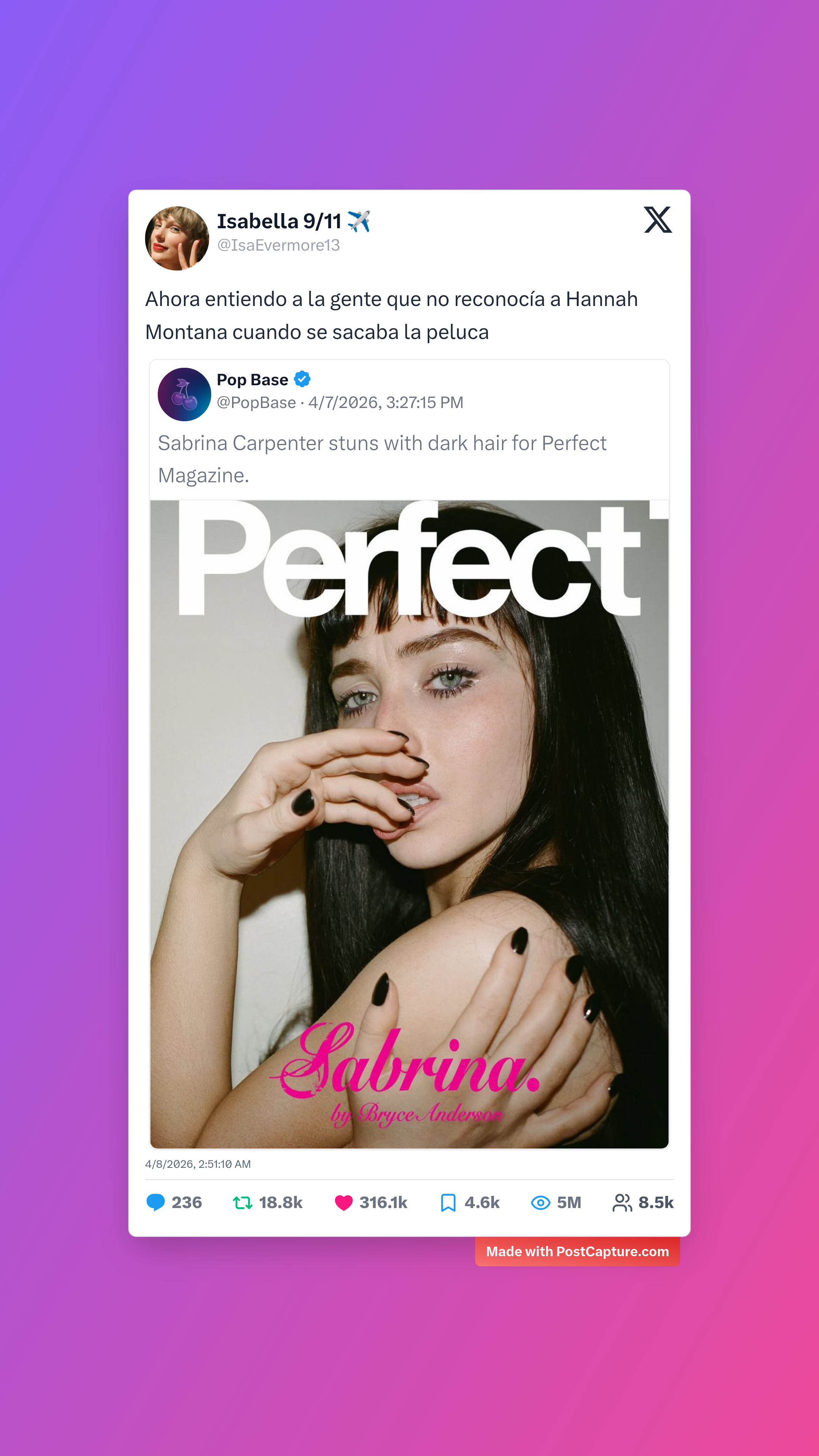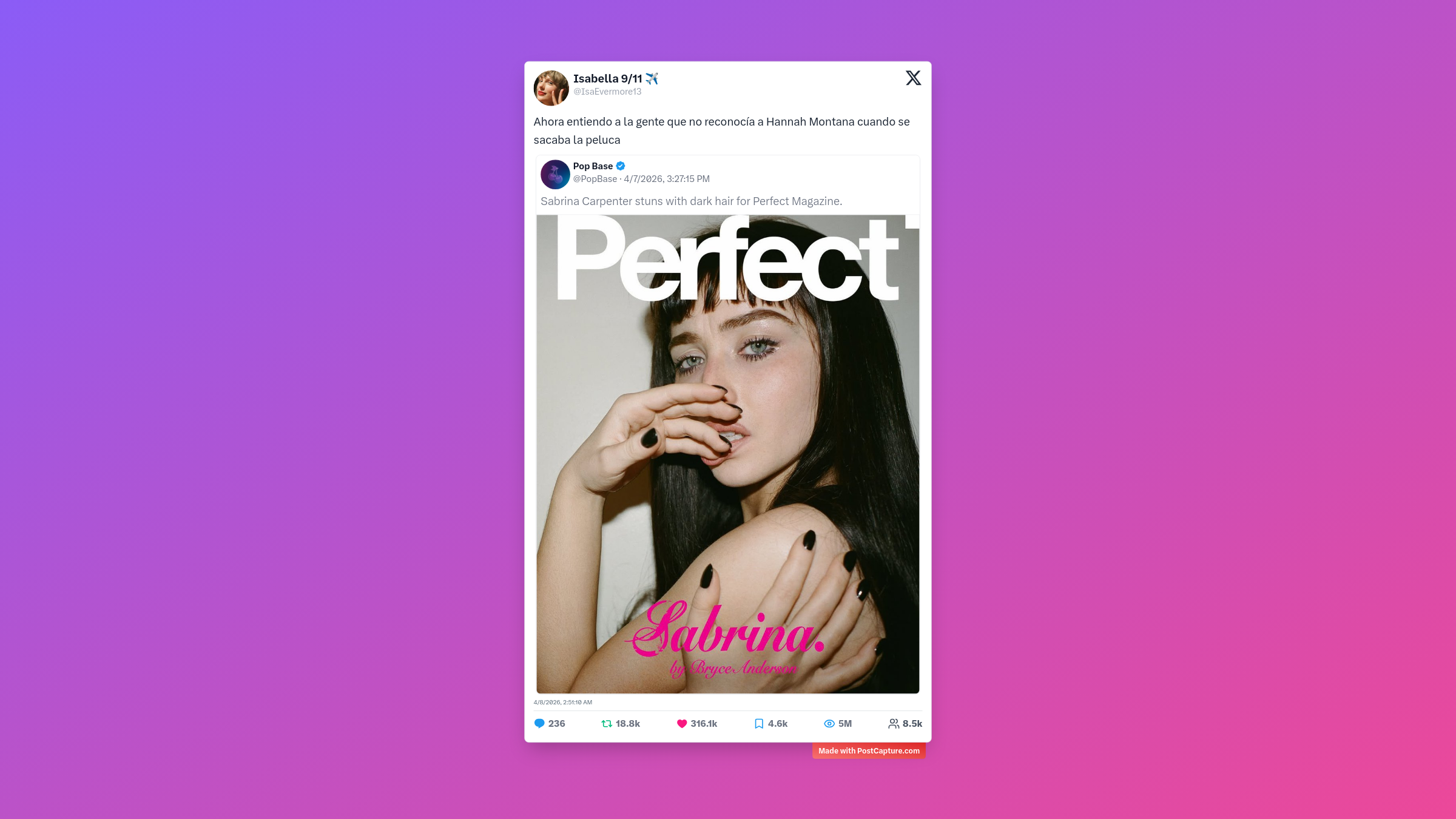 Las transformaciones también dieron mucho de qué hablar. Cuando Sabrina Carpenter apareció con un cambio de look radical, Isabella 9/11 comparó la situación con el clásico truco de Hannah Montana, una referencia que todos entendimos y celebramos con más de 316,000 likes. Por otro lado, Zoso nos dejó pensando con una pregunta sobre las barreras culturales del humor que dejó a más de uno intentando explicar lo inexplicable a un europeo.