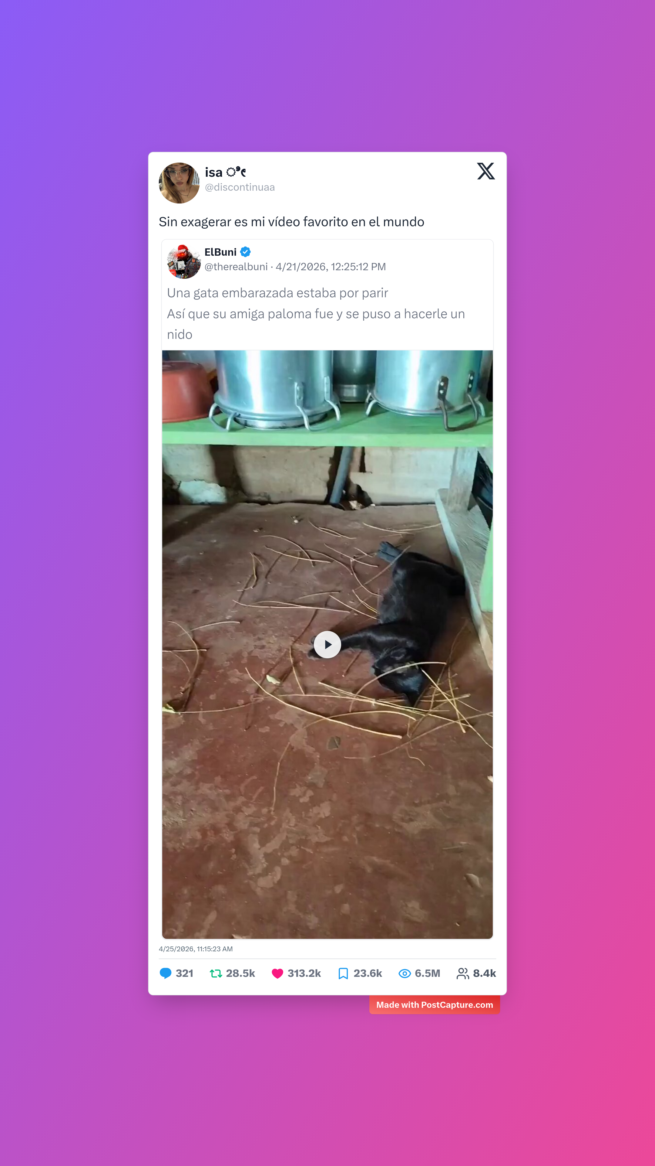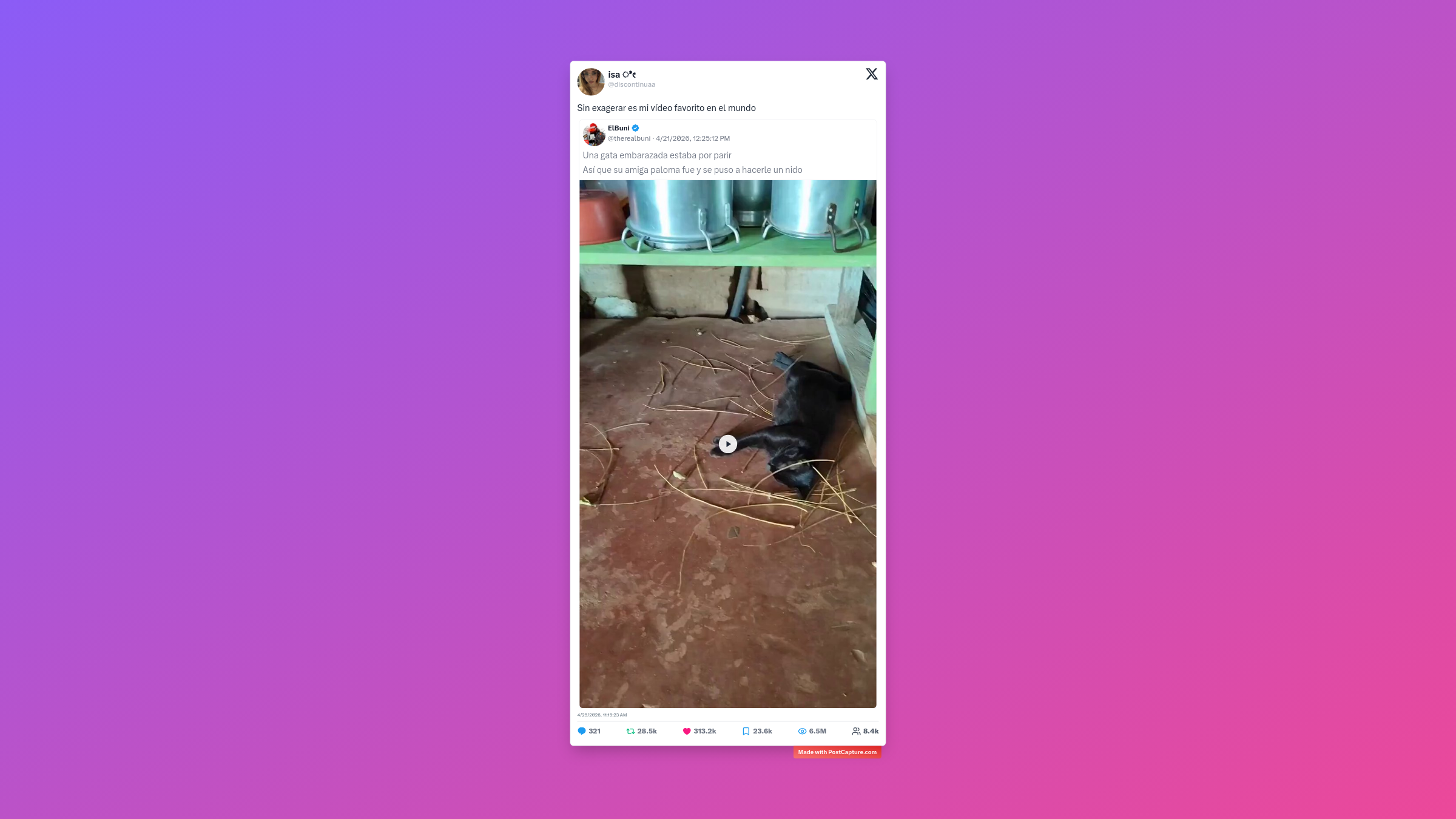 La ternura también tuvo su momento de gloria con un video que se volvió viral instantáneamente: una paloma ayudando a una gata embarazada a construir su nido. El video se compartió miles de veces, convirtiéndose para muchos en su contenido favorito de la semana. Es el tipo de historia natural que nos recuerda por qué amamos internet.